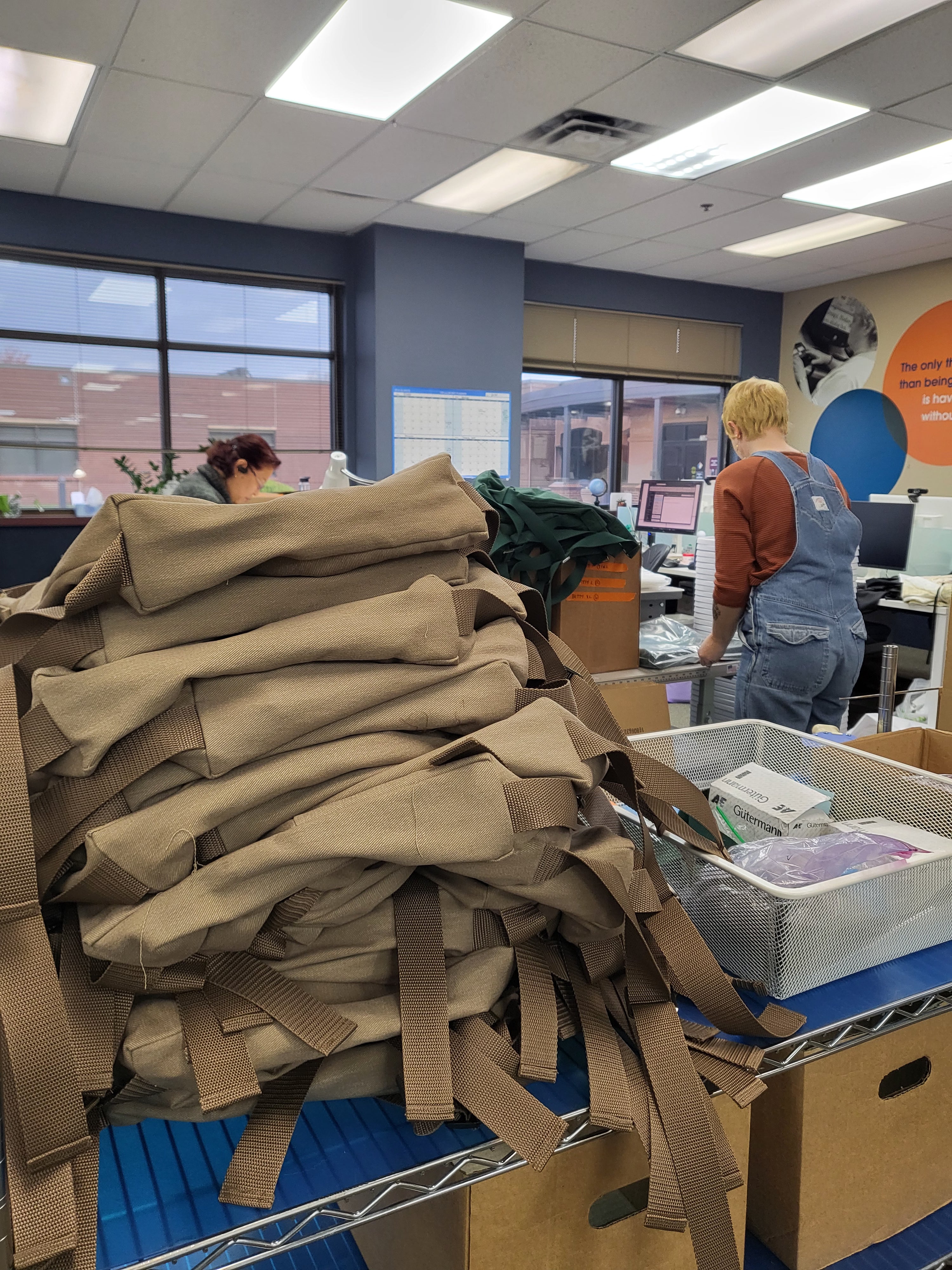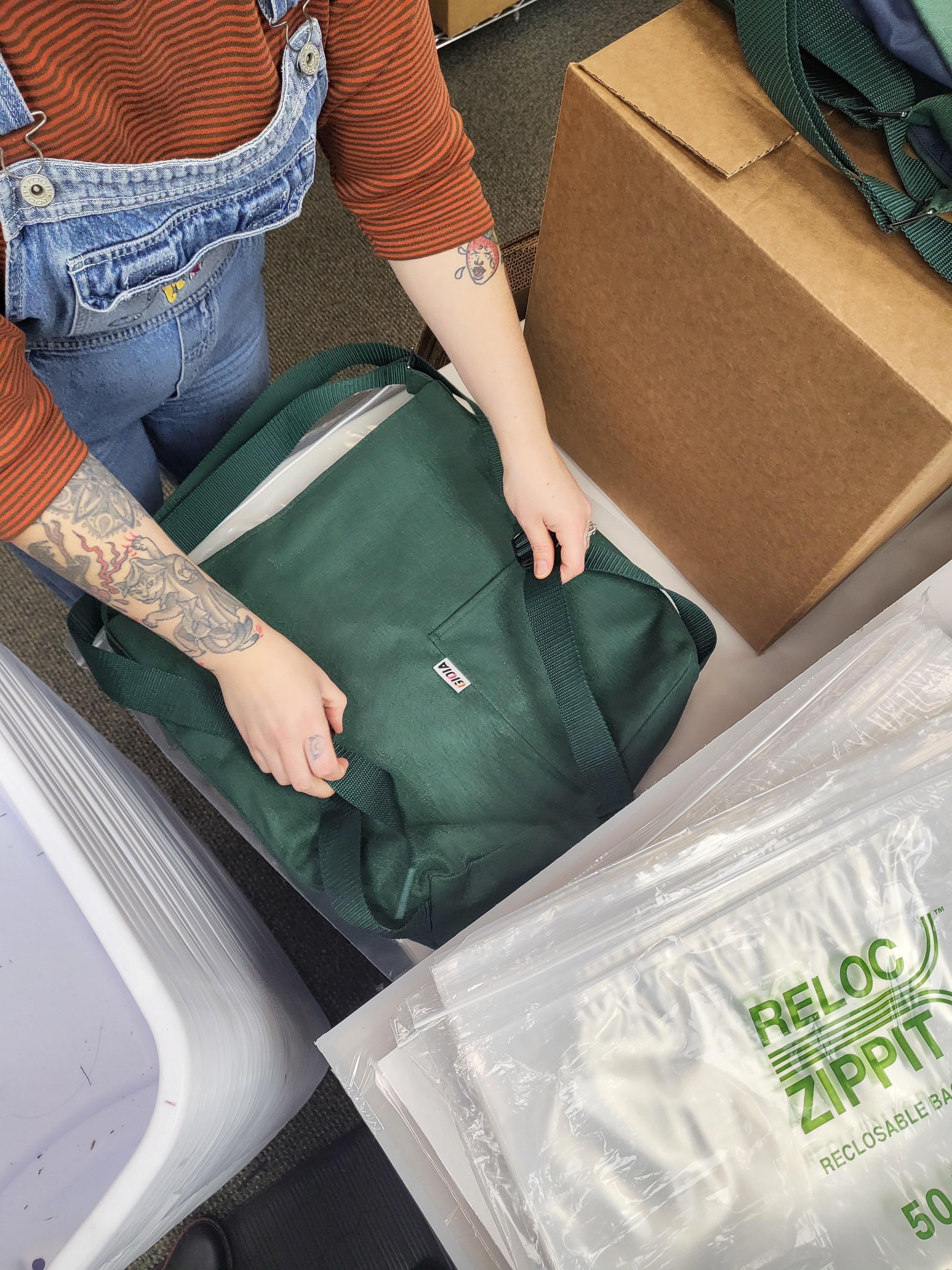 Each GIOIA bag is made in Kansas City. We work with a local apparel production service that pays a livable wage and benefits to their professionals. We produce in small batches.